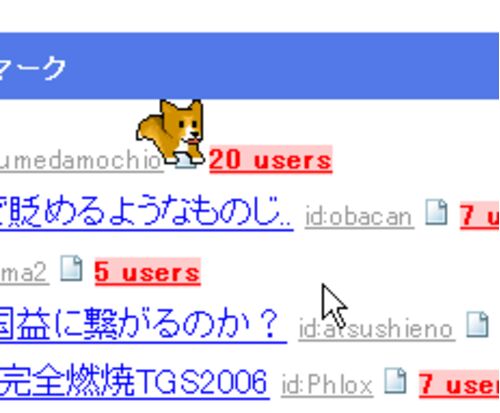 id:sawat:20060922の続きですが、ふと思うところがあって作ってみました。しなもんがブラウザ上のマウスカーソルを追いかけてきます。マウスをぐるぐる動かして気が済むまで、しなもんと追いかけっこしましょう。 図1 : しなもんがマウスカーソルを追っかけ…